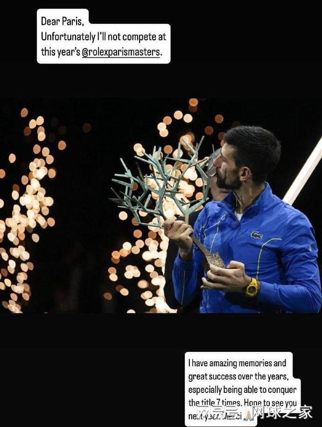 我们首先来关注塞尔维亚球王德约科维奇。北京时间昨晚,ATP1000巴黎大师赛七届赛会冠军德约科维奇在个人社交媒体上宣布退出今年的巴黎大师赛,“亲爱的巴黎,很遗憾今年无法参加比赛。这些年来我在此留下了许多美好回忆,尤其荣幸能够七次夺冠。期待明年相见。”有球迷预判,德约科维奇很可能一退再退,包括年终总决赛,就此结束2025赛季,为明年的澳网积蓄力量。