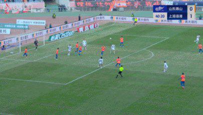 第28分钟,泰山队反击中左路刘洋传中,泽卡后点包抄转身抽射打在吾米提江身上弹出。