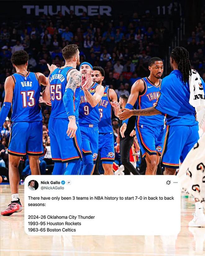从开赛至今仍未尝一败,并且是连续两个赛季做到 7-0 开局,比肩奥拉朱旺的火箭。