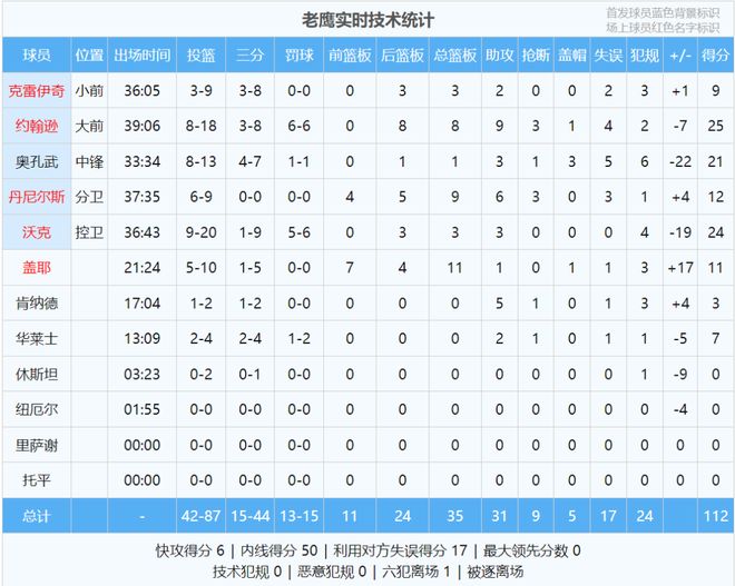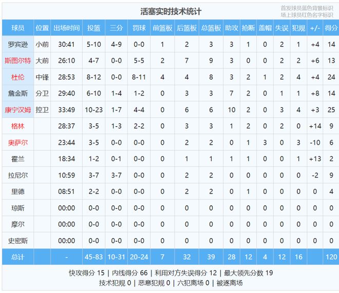 老鹰和活塞都不是流量大队,但这场对决真的精彩。最后看看数据: