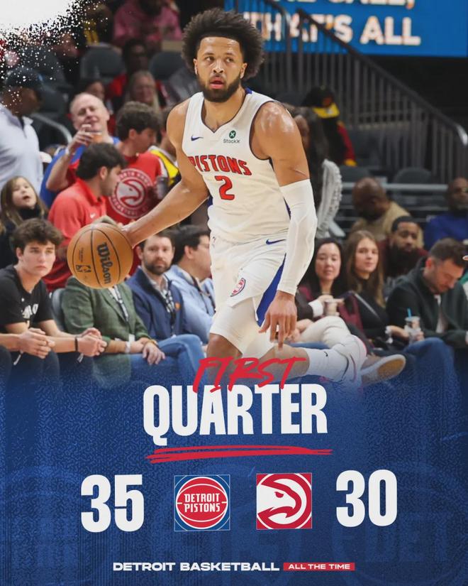 杜伦本赛季场均20.3分12.3篮板1.8助攻1抢断1.1盖帽,坎宁安场均27.5分5.4篮板9.9助攻1.4抢断0.8盖帽。如果保持健康,他俩将入选全明星。说回比赛,第一节活塞出现5次失误,送给老鹰5次抢断。首节战罢,活塞35-30领先5分。