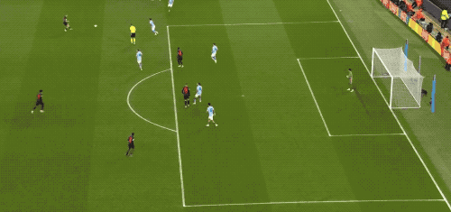 即便如此,曼城还是明显占据了场面上的主动权,但率先进球的却是勒沃库森,第20分钟,阿莱克斯·加西亚传中,科法内标志性地回做停球,边后卫格里马尔多一脚怒射,打破僵局。