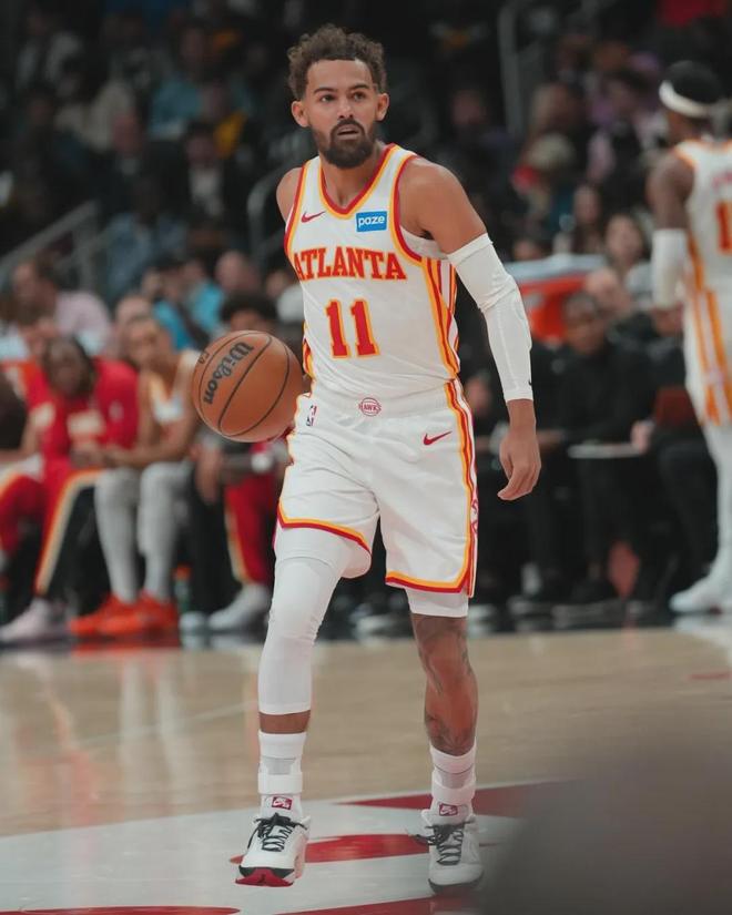 特雷-杨本赛季的表现并不理想,不算受伤的那一场,他场均20.8分9.5助攻,看起来还不错但效率极低,投篮命中率36.4%,三分命中率19.2%。