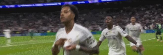 第28分钟,在左路队友牵扯了曼城防守人精力,右路队友撕扯开了空间基础下,贝林厄姆带球狂奔给到了罗德里戈机会。右路很空他几乎是没有遇到太多阻拦,就自主面对中卫及门将了。一个小角度低射破门,皇马1-0。