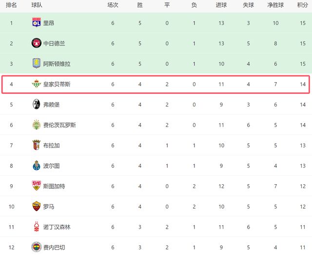 在安东尼的带领下,贝蒂斯如今在欧联杯排名第四,他们牢牢掌握了主动权,只要最后2场比赛对阵塞萨洛尼基和费耶诺德,贝蒂斯能够全取6分,就肯定能直接晋级淘汰赛。从目前的状态和绝对实力来看,贝蒂斯出线理应不存在问题。事实上,他们本赛季的目标,是冲击欧联杯冠军。如今贝蒂斯兵强马壮,他们有足够的实力与里昂和维拉等强队争冠。