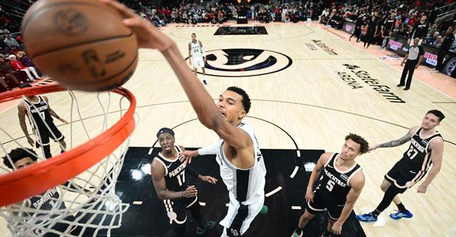 马刺方面,文班亚马26分12篮板3助攻,瓦塞尔18分7篮板3助攻,卡斯尔17分7助攻,约翰逊13分3篮板。