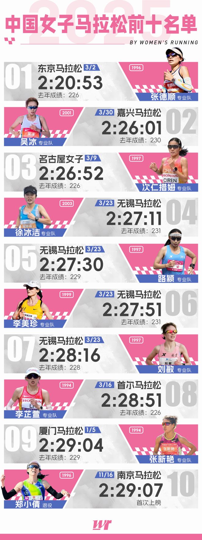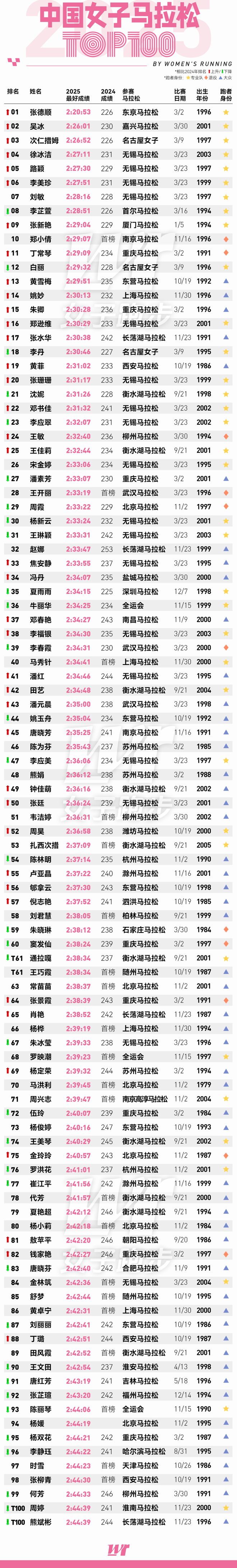 当《2025年中国女子马拉松百强榜》这张表格被101位女跑者(含并列)的名字、成绩一项项填满时,有关中国女子马拉松这一整年的回忆,开始变得清晰。