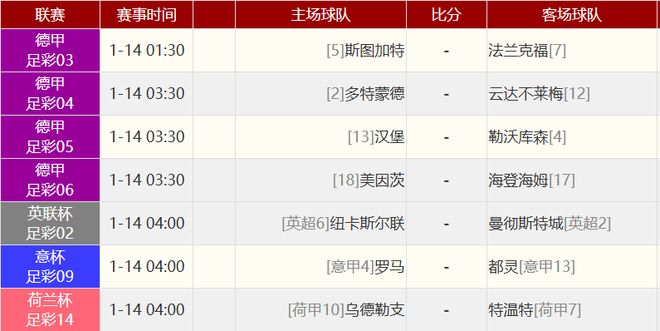 其他赛事比分: